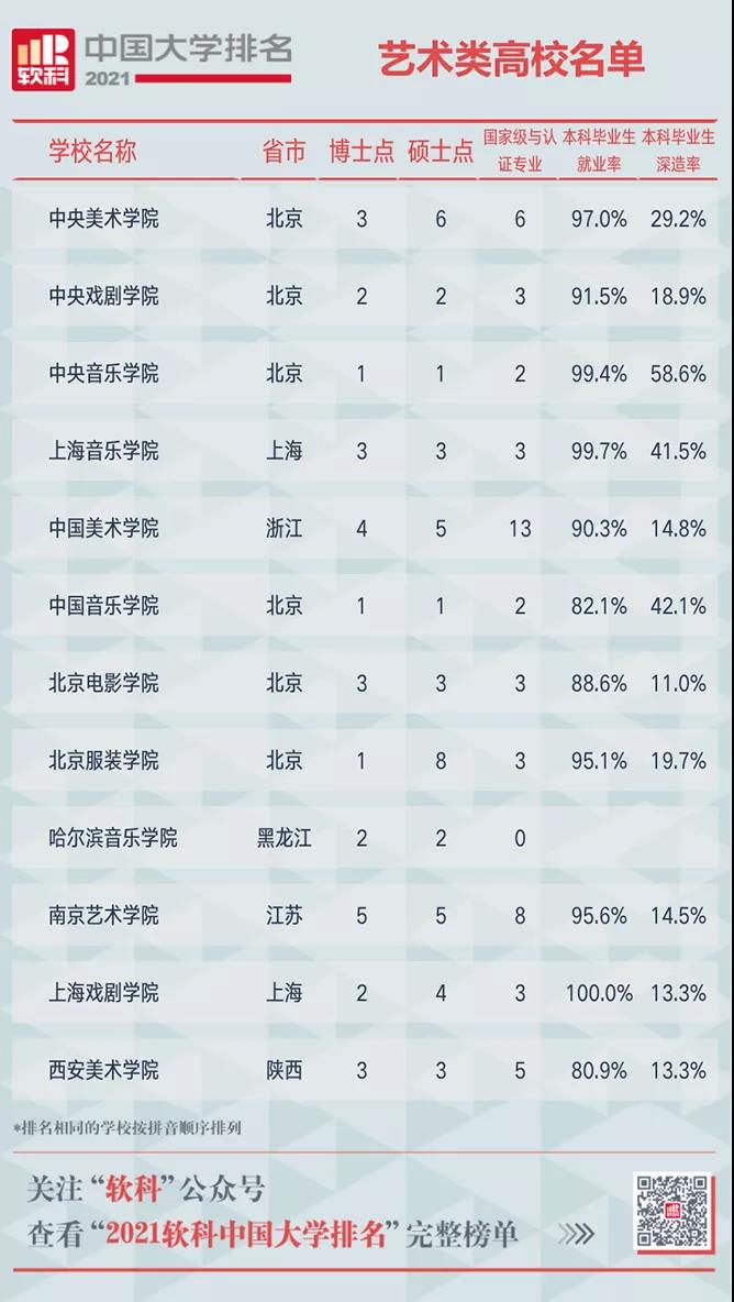2021軟科中國(guó)藝術(shù)類高校名單(有博士學(xué)位授權(quán)點(diǎn))