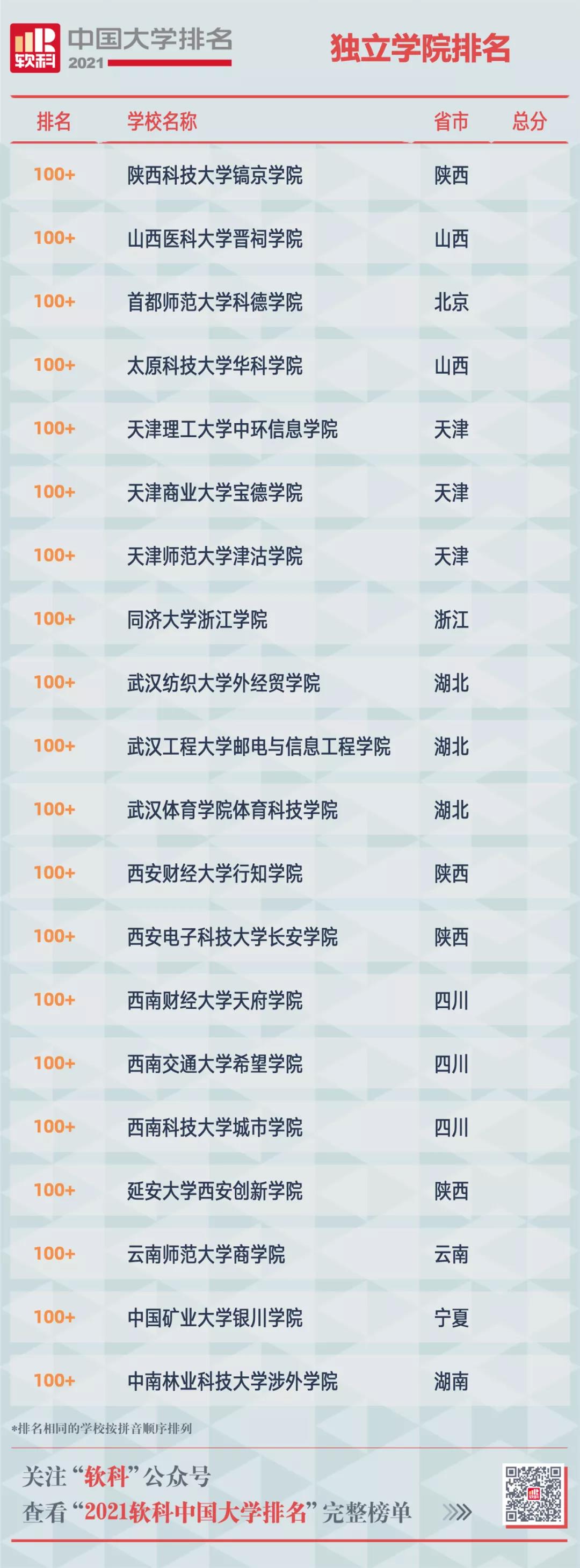 2021軟科中國(guó)獨(dú)立學(xué)院排名上榜高校共170所,廈門大學(xué)嘉庚學(xué)院、燕山大學(xué)里仁學(xué)院、河北大學(xué)工商學(xué)院居全國(guó)前三。