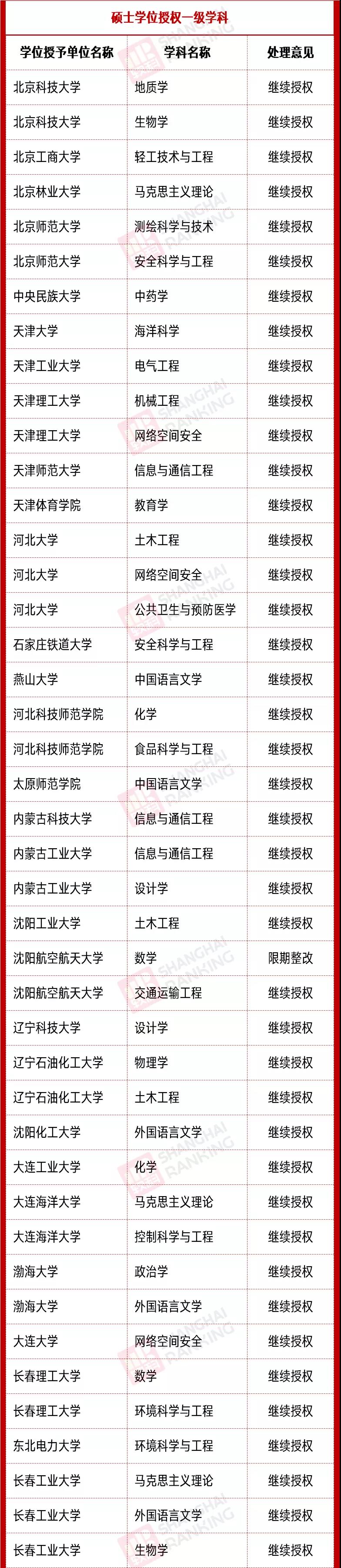 通知稱,處理意見為“繼續授權”的學位授權點,可繼續行使學位授權。