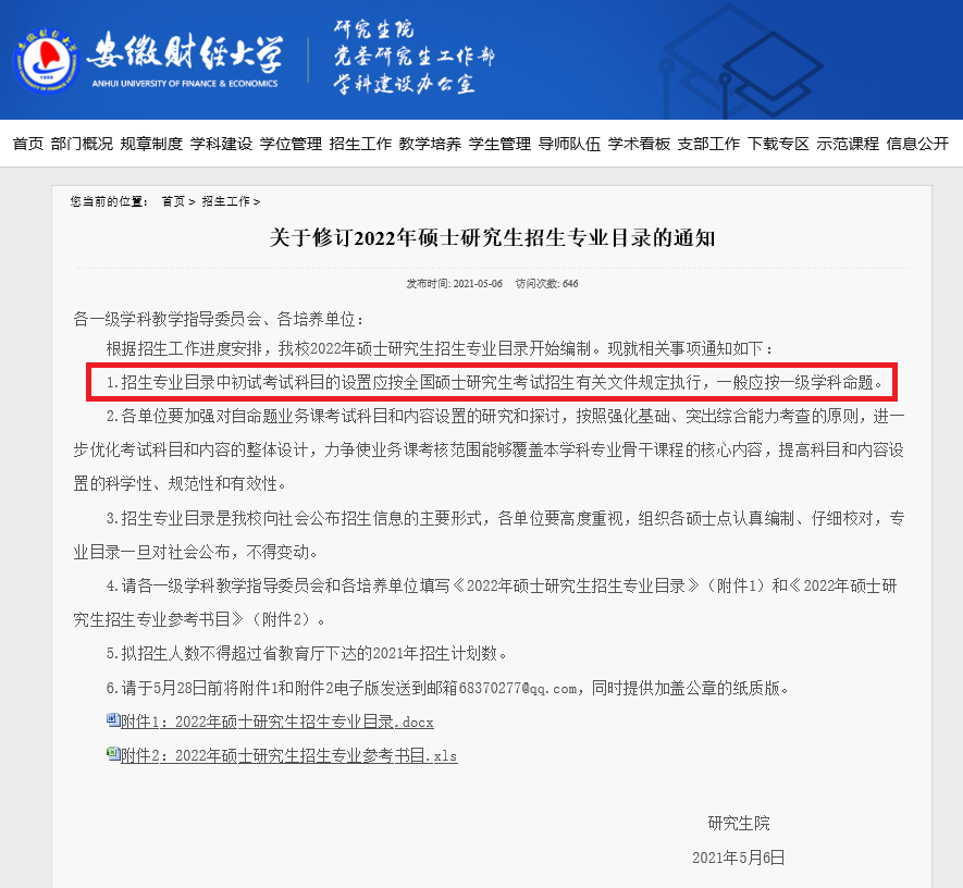 安徽財經大學研究生院官網發布《關于修訂2022年碩士研究生招生專業目錄的通知》公告,具體細節還在商討中,不過也算給我們打了預防針~