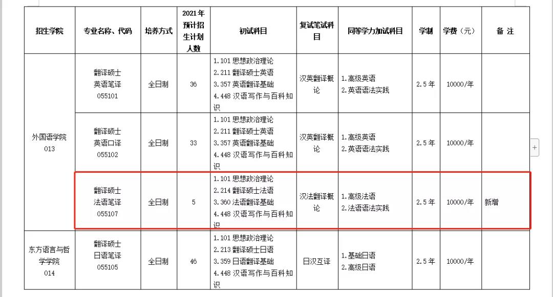 浙江工商大學2021年起新增招生專業:法語筆譯055107(全日制專碩);