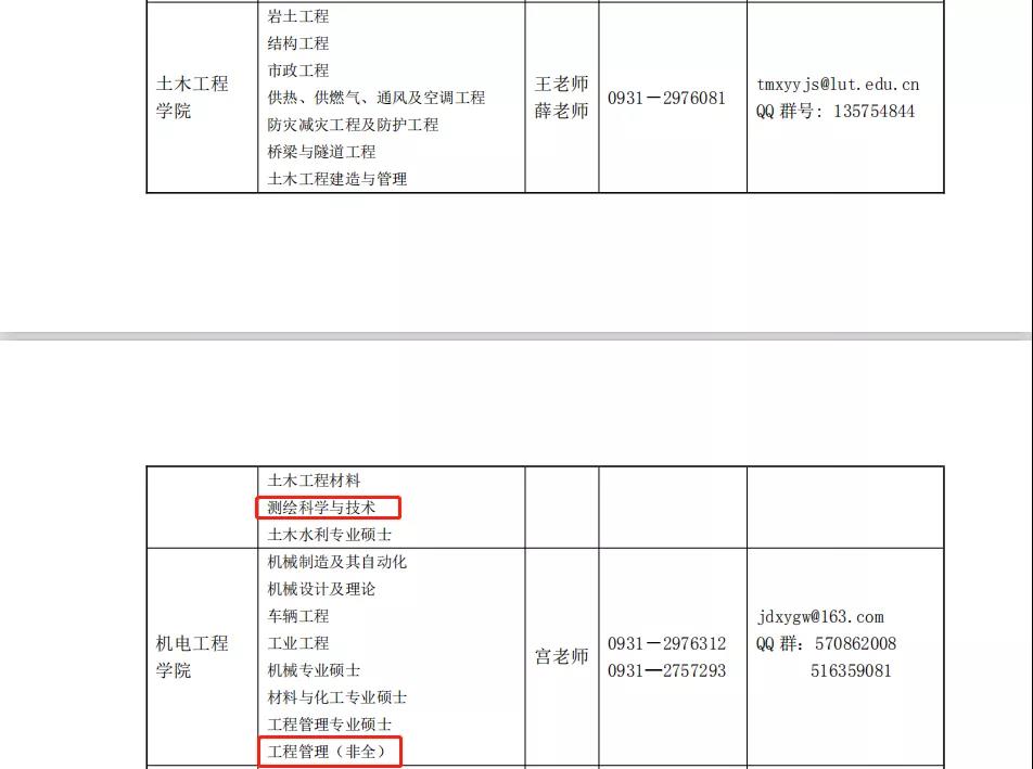 蘭州理工大學2021年碩士招生目錄中新增專業:測繪科學與技術專業;電信學院和機電學院招收工程管理(非全);