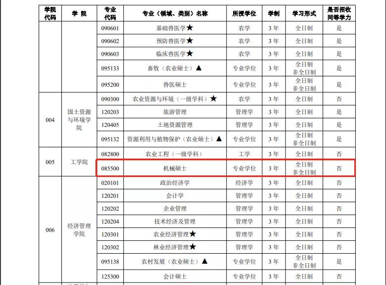 江西農業大學專業學位增加0855機械碩士專業招生;教育碩士(0451)招生人數減少。