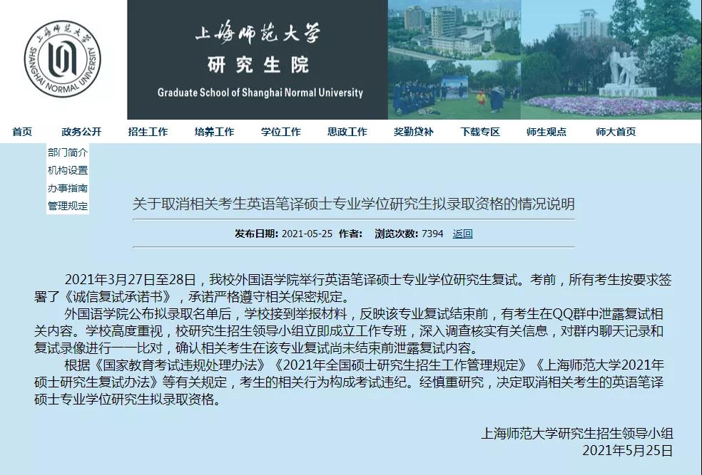 《關于取消相關考生英語筆譯碩士專業學位研究生擬錄取資格的情況說明》