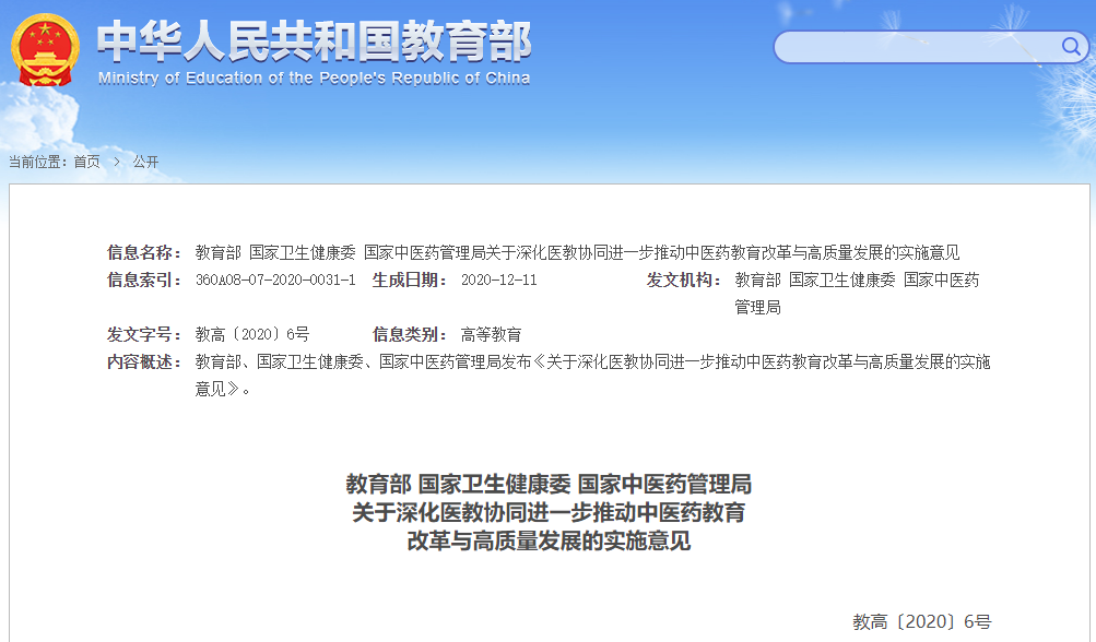 如今,中醫(yī)藥正迎來發(fā)展的黃金期。2020年12月,《關(guān)于深化醫(yī)教協(xié)同進(jìn)一步推動(dòng)中醫(yī)藥教育改革與高質(zhì)量發(fā)展的實(shí)施意見》重磅發(fā)布,其中明確,建設(shè)100個(gè)左右中醫(yī)藥類一流本科專業(yè)建設(shè)點(diǎn),適度擴(kuò)大中醫(yī)藥類“一流學(xué)科”建設(shè)規(guī)模。2021年3月,“十四五”規(guī)劃中提出,堅(jiān)持中西醫(yī)并重和優(yōu)勢(shì)互補(bǔ),大力發(fā)展中醫(yī)藥事業(yè)。據(jù)國(guó)家中醫(yī)藥局相關(guān)負(fù)責(zé)人在國(guó)新辦發(fā)布會(huì)上透露,預(yù)計(jì)“十四五”期間中央財(cái)政對(duì)中醫(yī)藥重大工程項(xiàng)目的投入會(huì)比“十三五”翻一番。前不久習(xí)總書記在河南考察時(shí)也重點(diǎn)提到,要發(fā)展中醫(yī)藥,注重用現(xiàn)代科學(xué)解讀中醫(yī)藥學(xué)原理,走中西醫(yī)結(jié)合的道路。