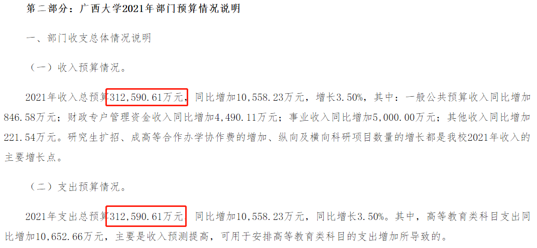 廣西雖不比東部省份經濟發達,2020年GDP總量僅位于全國第19,但是在“砸錢”給高等教育這件事上,照樣很拼。廣西大學2021年預算經費高達31.26億,較2020年的30.2億有所上漲,其“財大氣粗”的程度甚至堪比32.84億元的蘇州大學。31.26億的預算,在西部地方“雙一流”里絕對稱得上是數一數二,即使是放在全國也極有競爭力。
