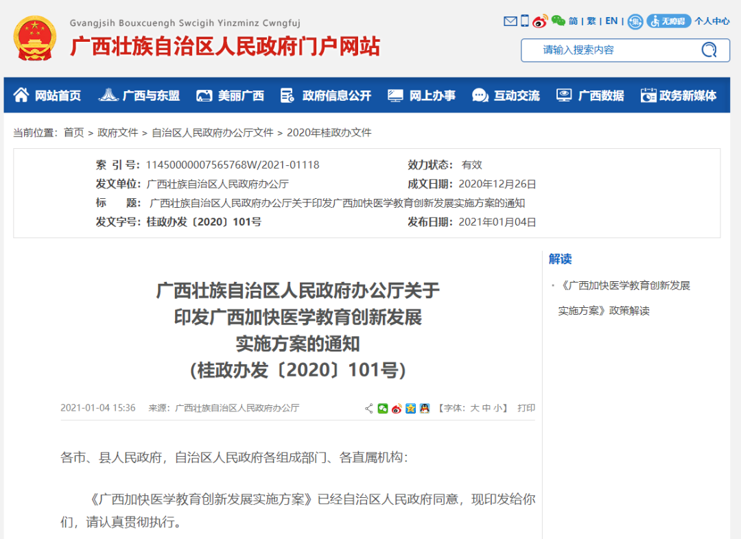 2021年1月,《廣西加快醫學教育創新發展實施方案的通知》出臺,其中提到推進自治區人民政府和國家中醫藥局共建廣西中醫藥大學,與國家衛生健康委共建廣西醫科大學。在醫學教育愈發受到重視的背景下,這兩所醫藥類大學未來將獲得更多支持。