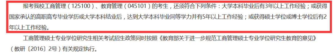 2.大學本科畢業后有3年以上工作經驗的人員;或獲得國家承認的高職高專畢業學歷或大學本科結業后,符合招生單位相關學業要求,達到大學本科畢業同等學力并有5年以上工作經驗的人員;或獲得碩士學位或博士學位后有2年以上工作經驗的人員。