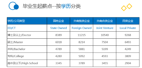 并且,同等學歷在不同企業(yè)類型下的薪資起伏,遠遠小于不同學歷等級之間的薪資起伏程度。