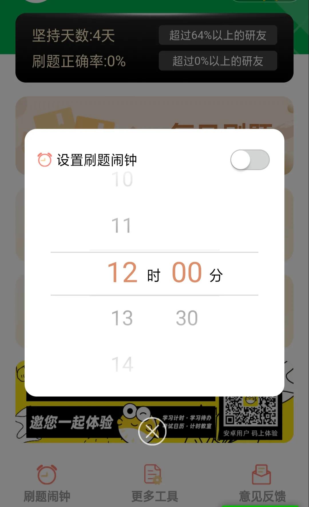擔心自己懶癌又犯使政治刷題大業荒蕪?刷題鬧鐘專屬叫醒貼心服務上線!根據你的復習計劃設置刷題鬧鐘提醒,努力成為一名合格的時間管理大師。