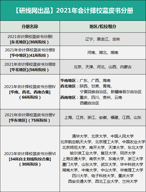 《2021年會計擇校藍皮書》同樣采取整冊、分冊兩種獲取形式,分冊獲取難度低,同時也更有針對性,劃分方式如下: