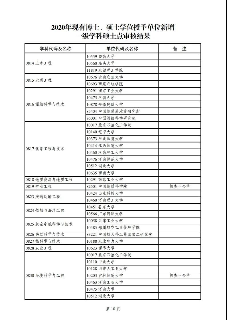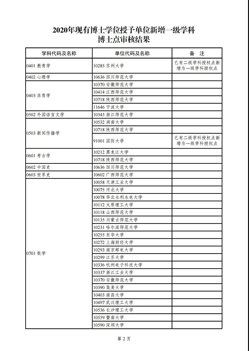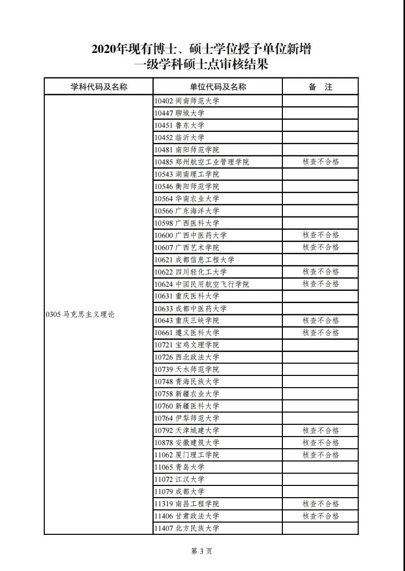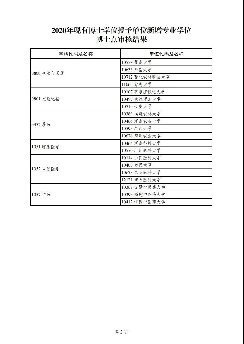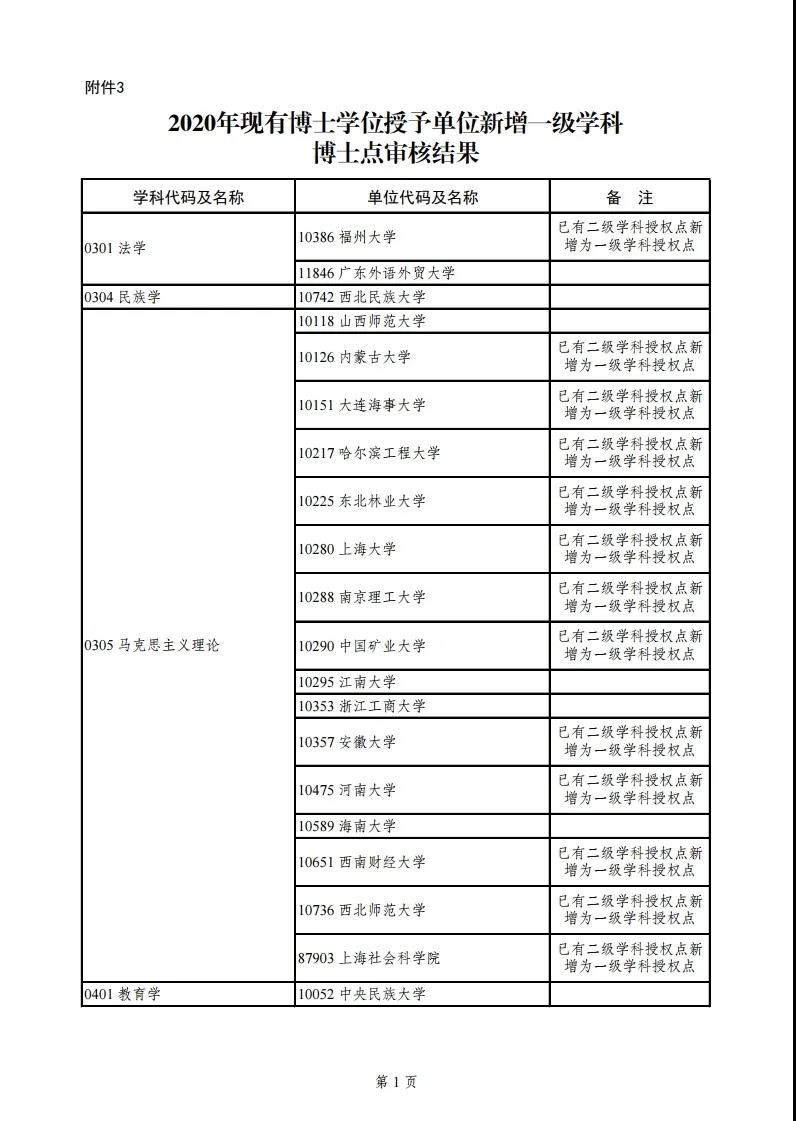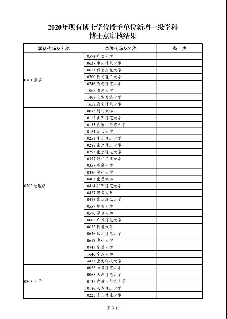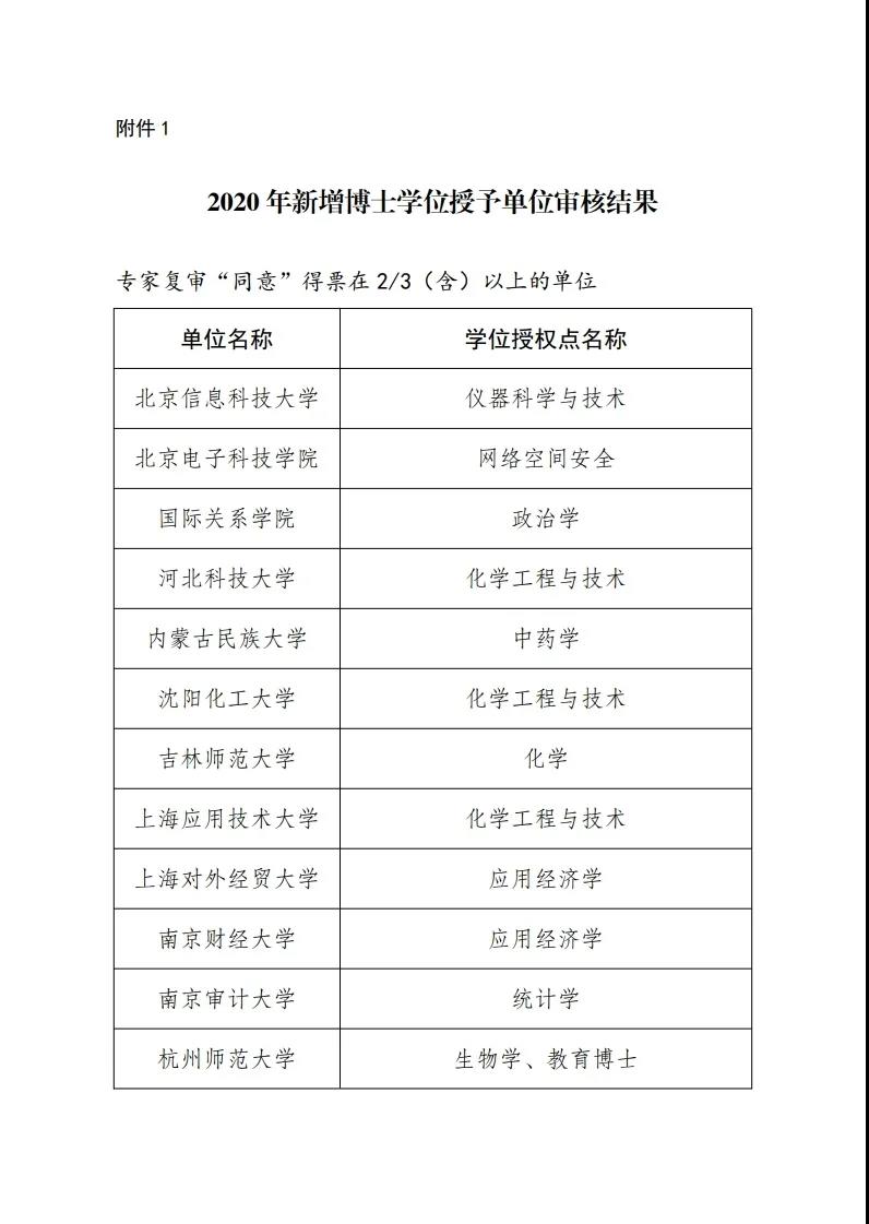 3.2020年現有博士學位授予單位新增一級學科博士點審核結果