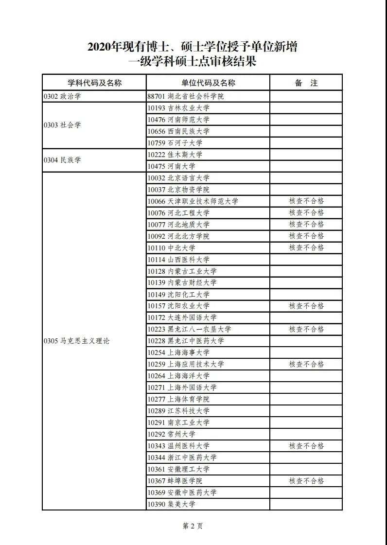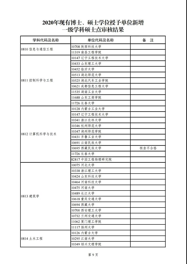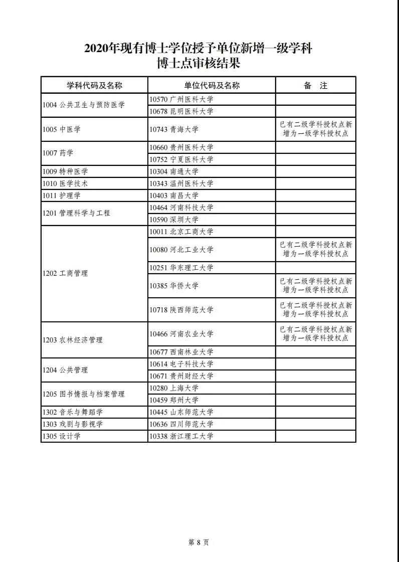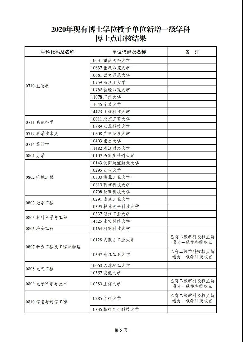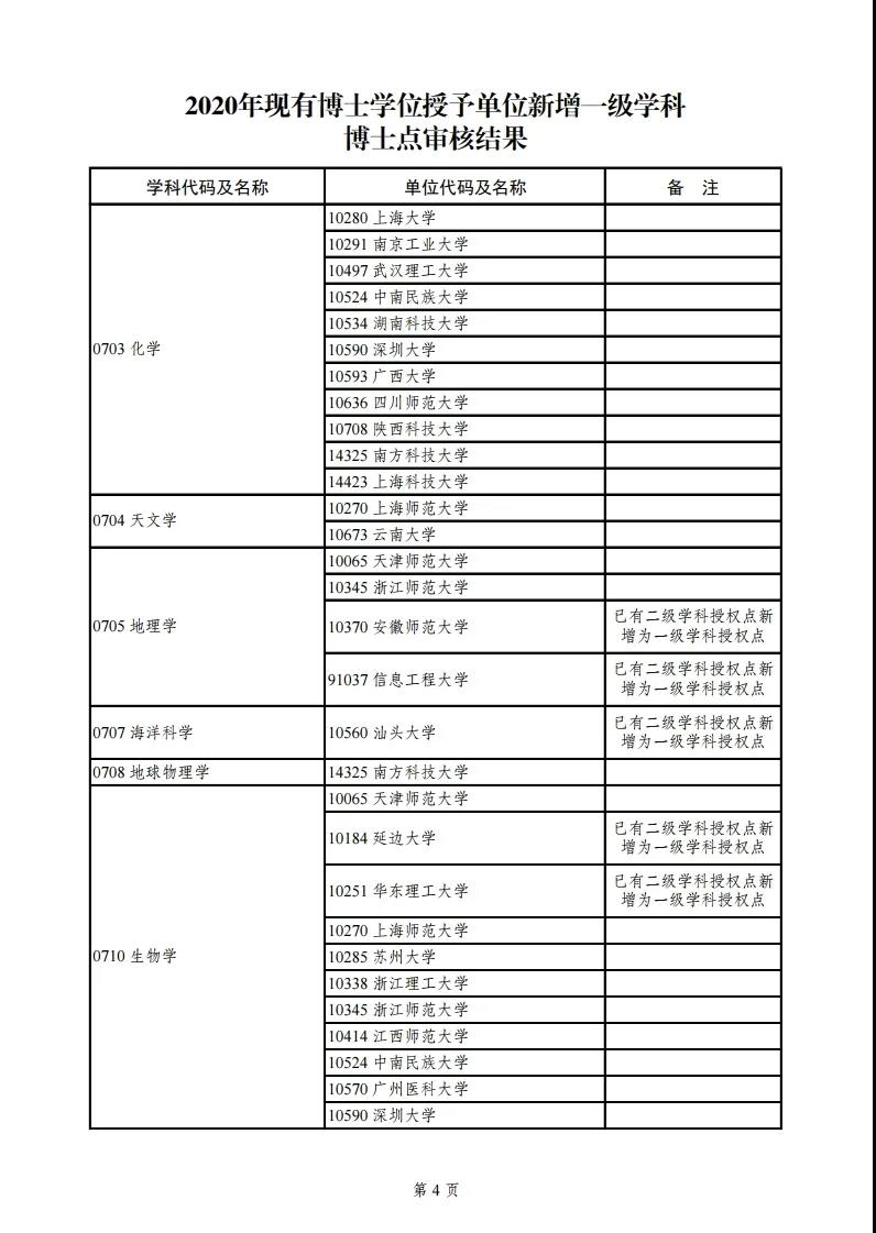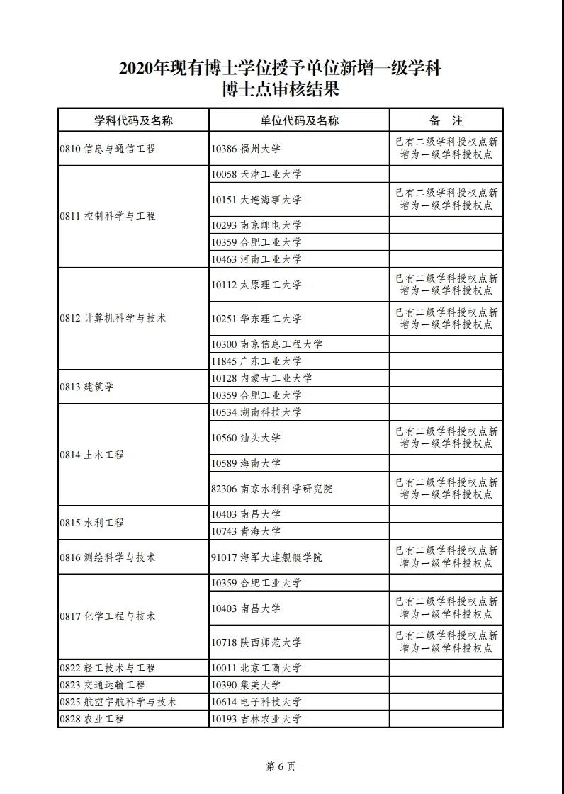 3.2020年現有博士學位授予單位新增一級學科博士點審核結果