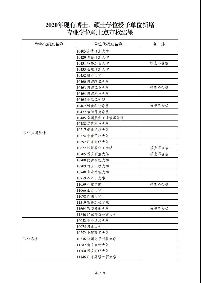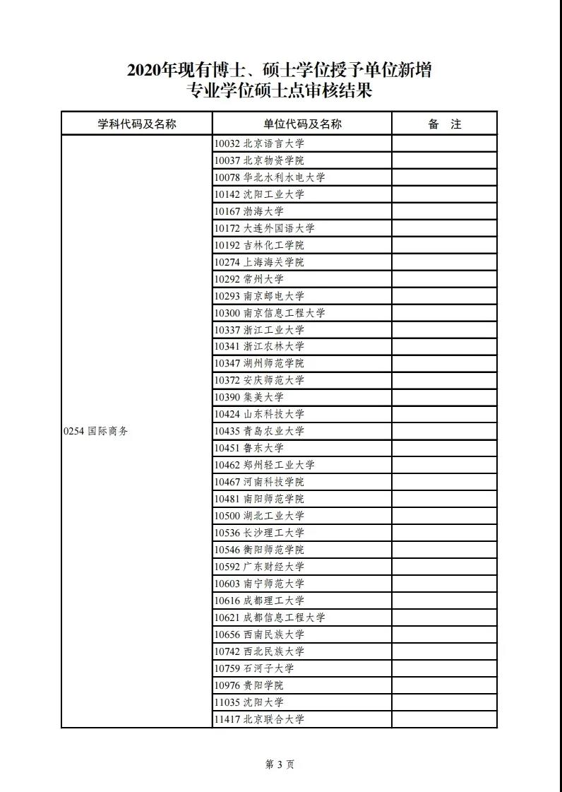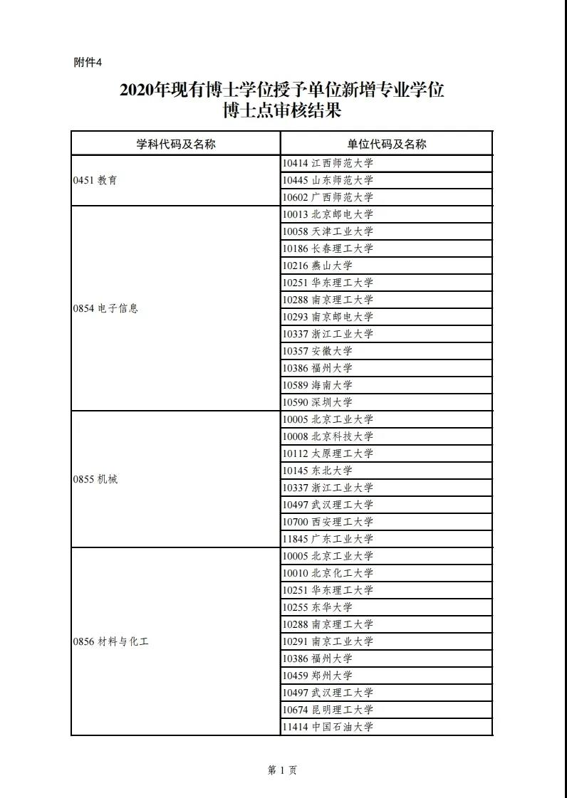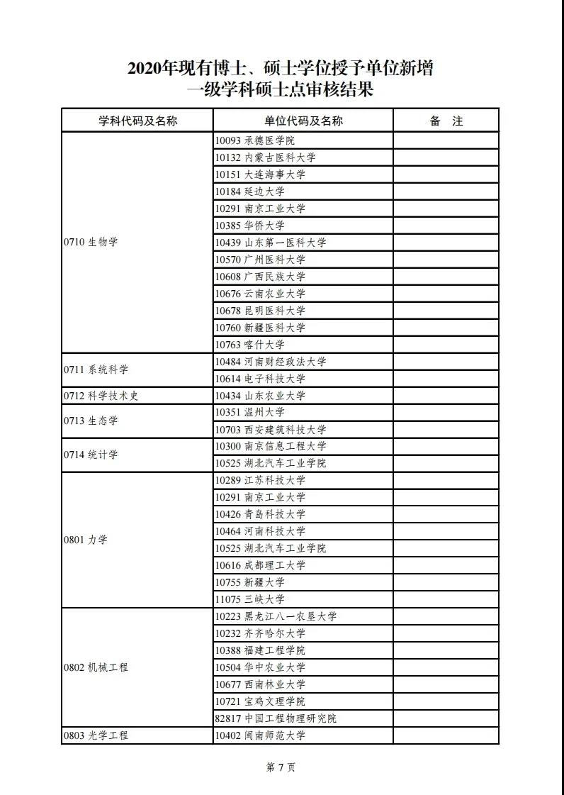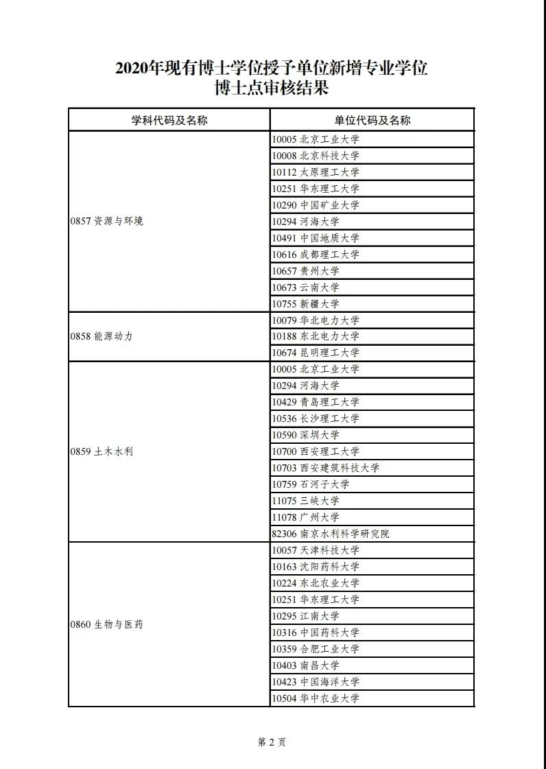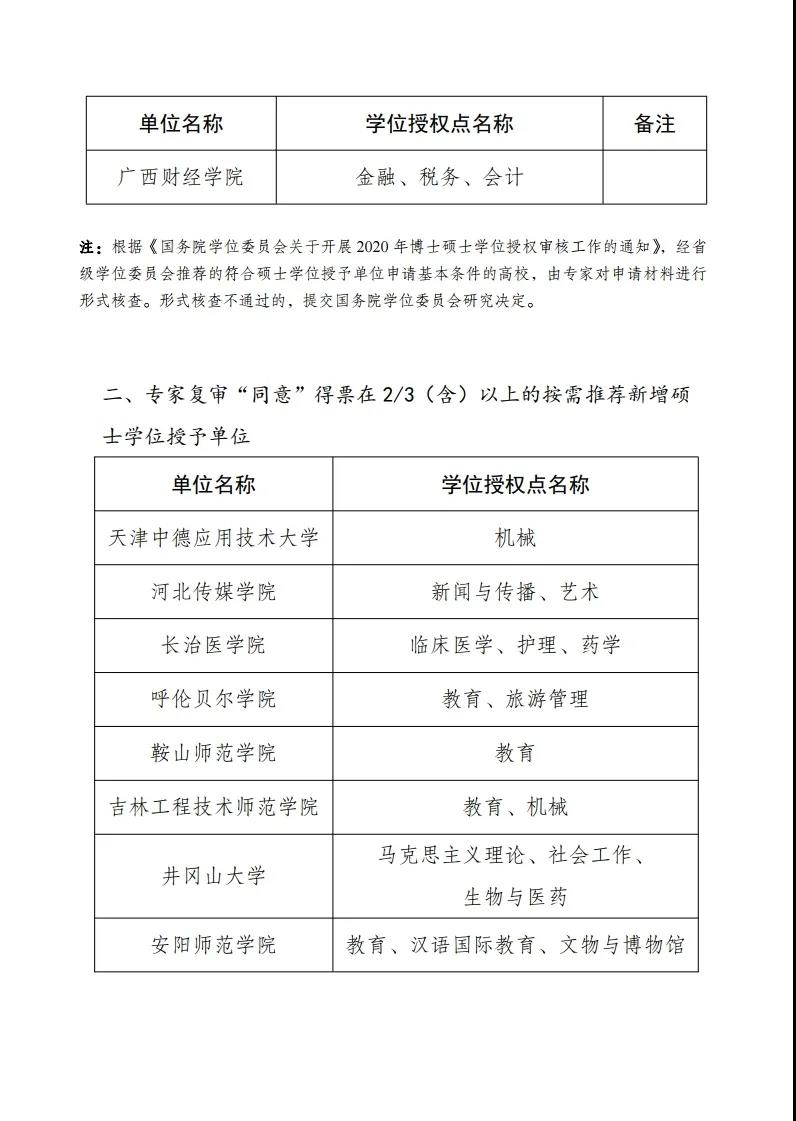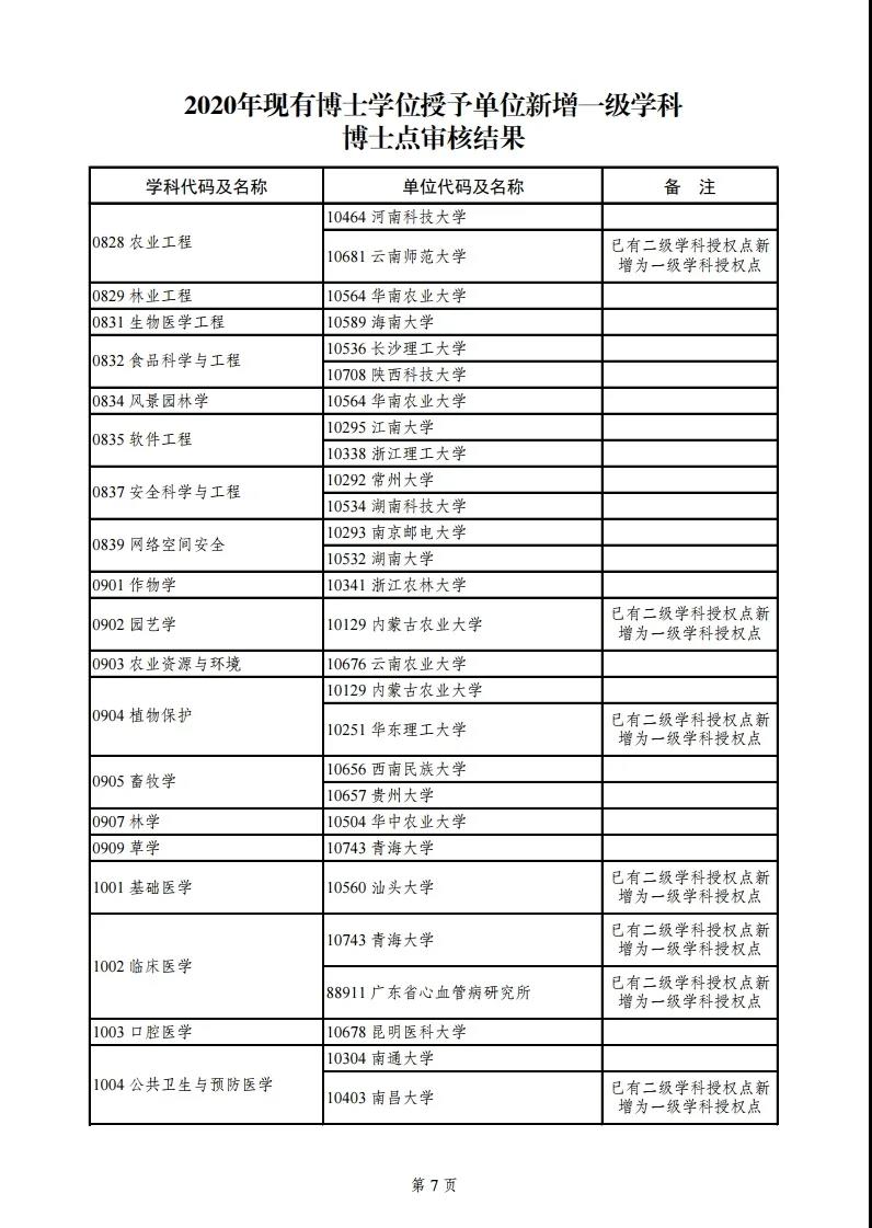 3.2020年現有博士學位授予單位新增一級學科博士點審核結果