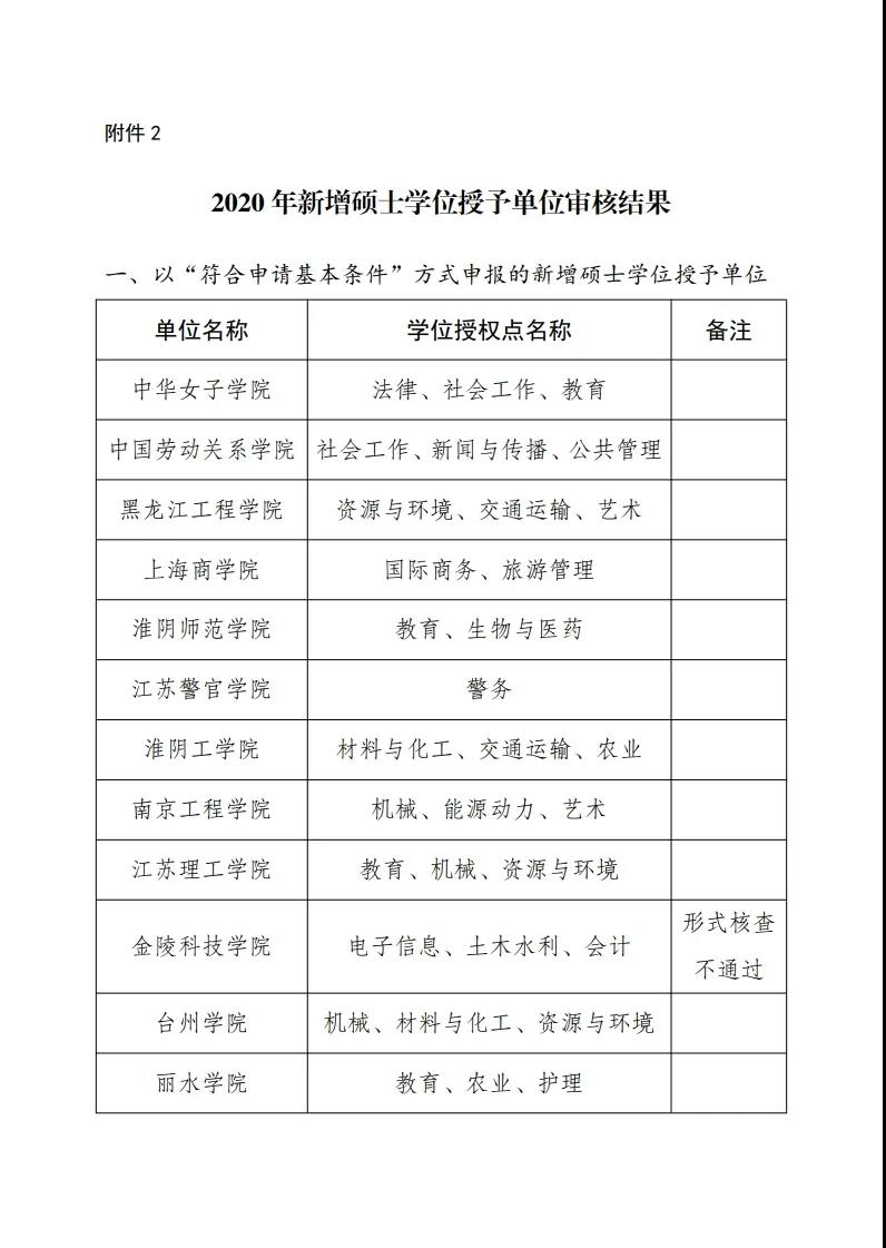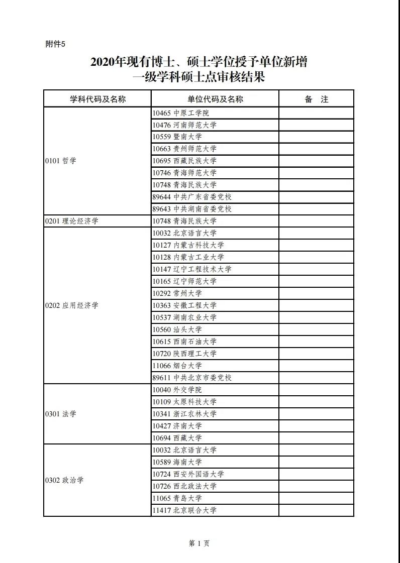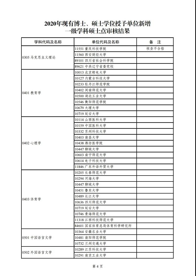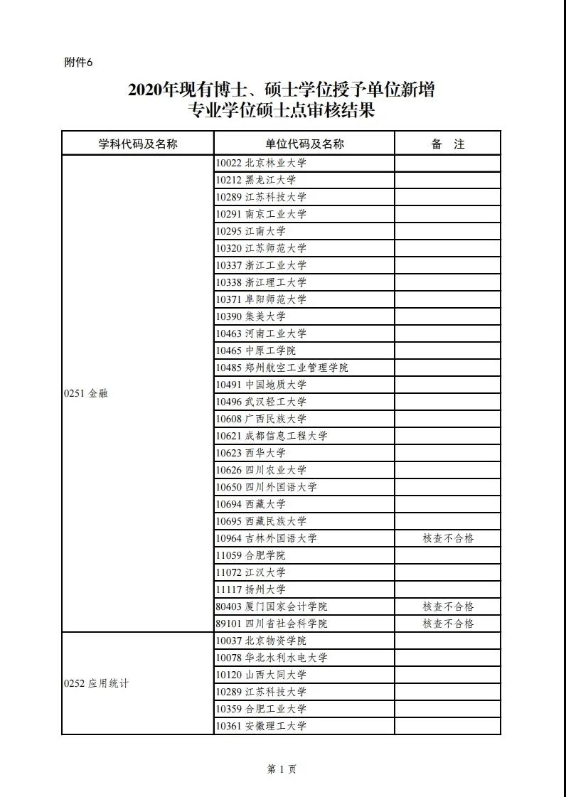 5.2020年現有博士、碩士學位授予單位新增一級學科碩士點審核結果(部分)