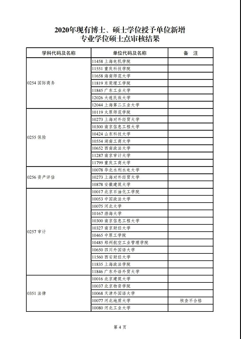 4.2020年現有博士學位授予單位新增專業學位博士點審核結果
