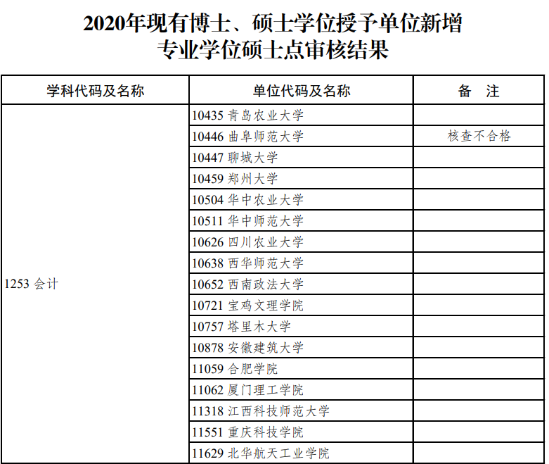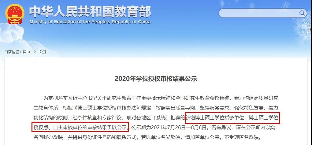 圖片截自《2020年學(xué)位授權(quán)審核結(jié)果公示》