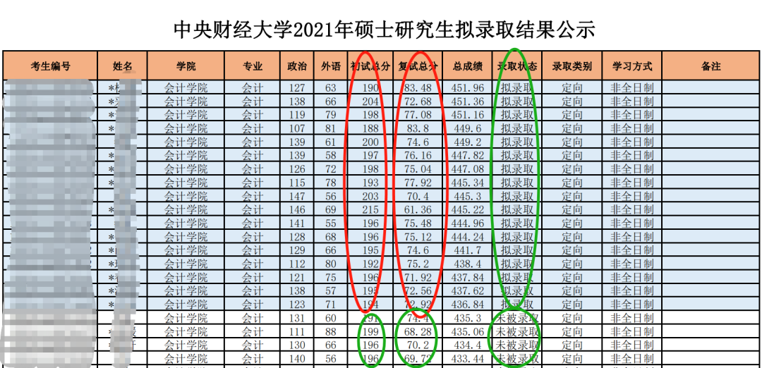 圖片來源:中央財經大學2021研究生擬錄取名單
