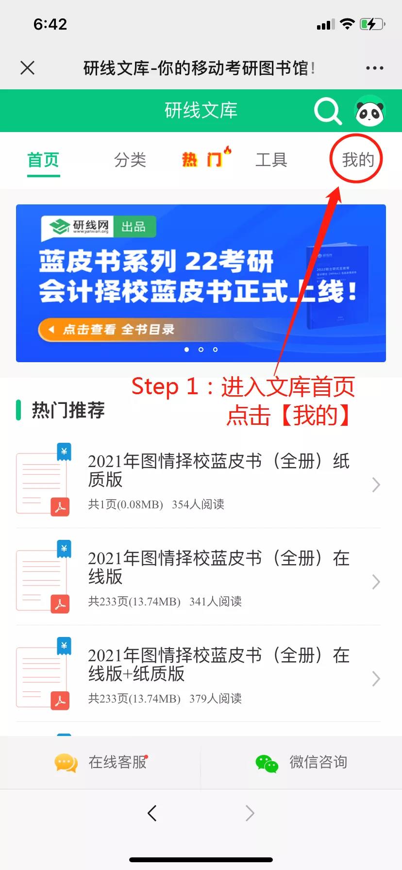 在線版:登錄研線文庫-我的頁面-我的資料中在線查看,不可下載;
