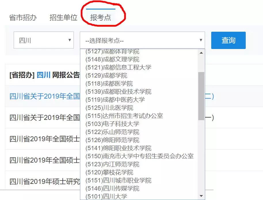 打開中國研究生招生信息網(wǎng)官網(wǎng),首頁菜單選擇【網(wǎng)報公告】點擊進入之后,按照下圖,一定要選擇自己報名時選的報考點,點擊查詢就可以看到啦!