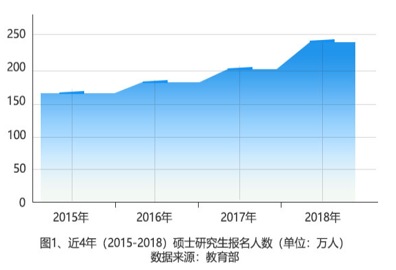 據(jù)教育部數(shù)據(jù)統(tǒng)計,2018年考研報考人數(shù)達到238萬,比2017年增加37萬人,增長18.4%。其中,應屆考生131萬人,比去年增加18萬人,往屆考生107萬人,比去年增加19萬人,考研增加人數(shù)和增長率均為近年來最高,報錄比僅為3.5:1。