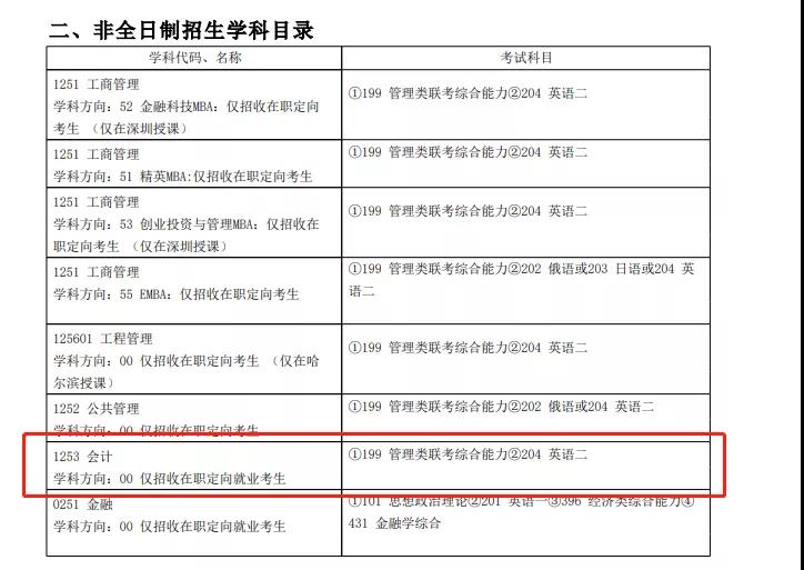 哈爾濱工業大學2022年經管學院會計碩士只招收非全日制