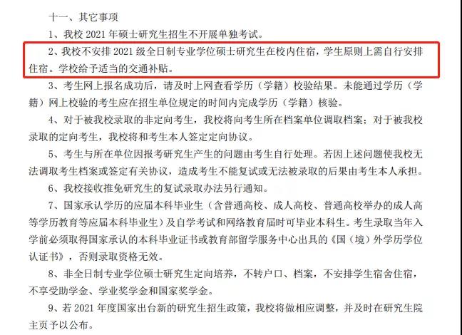 南京大學(xué)不安排2021級(jí)全日制專碩在校內(nèi)住宿,學(xué)生原則上需自行安排住宿。學(xué)校給予適當(dāng)?shù)慕煌ㄑa(bǔ)貼。