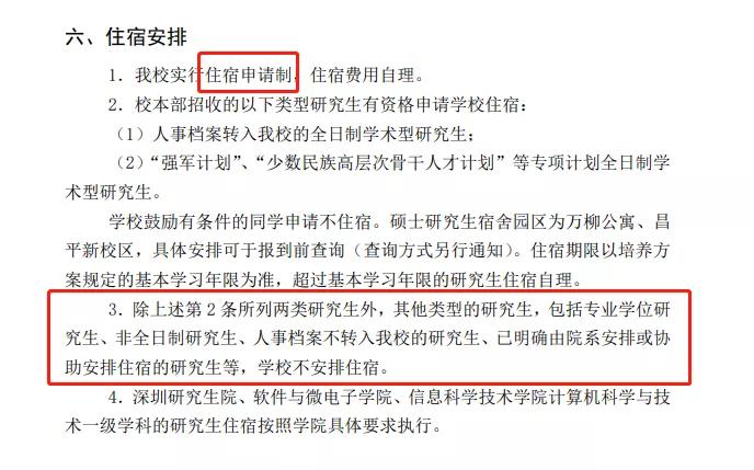 北京大學(xué)實(shí)行住宿申請(qǐng)制,專業(yè)學(xué)位研究生(專碩)、非全日制研究生、人事檔案不轉(zhuǎn)入北京大學(xué)的研究生、已明確由院系安排住宿的研究生等,北京大學(xué)不安排住宿。