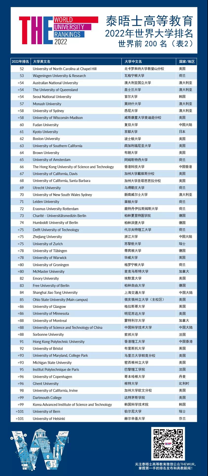 2022年度泰晤士高等教育世界大學排名出爐!共97所中國大陸高校上榜!一起來看!