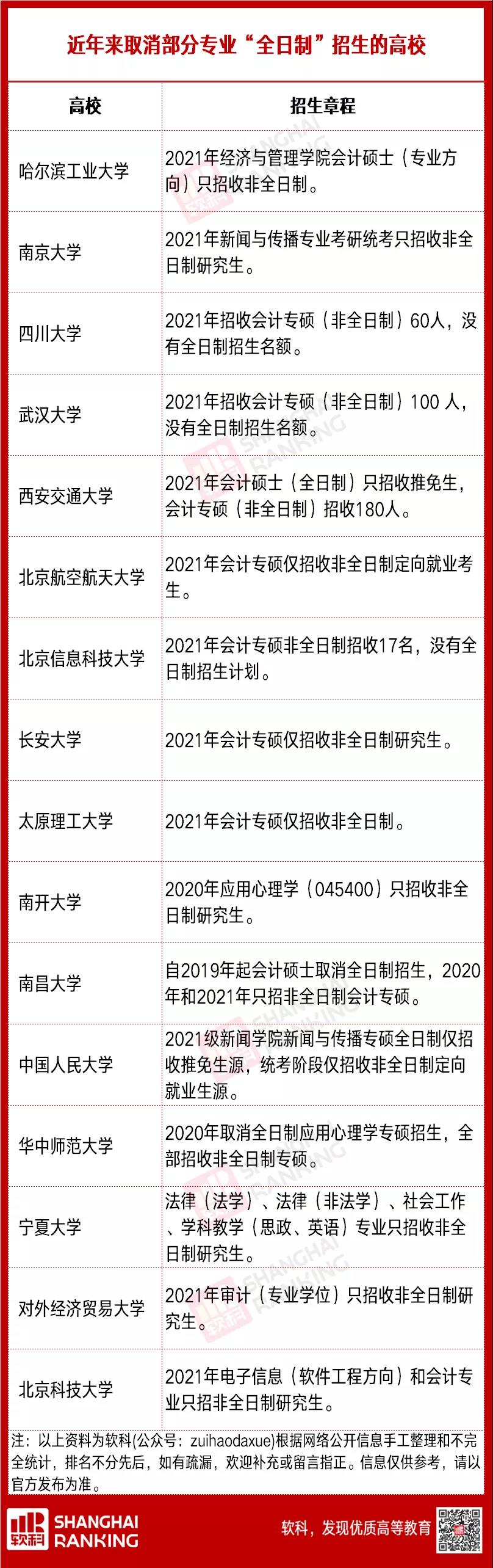 除了北京工商大學,近年來哈爾濱工業(yè)大學、南京大學等不少知名高校在研究生的招生方式上做出了類似的變化,規(guī)定部分專業(yè)停招全日制研究生,只招收非全日制。