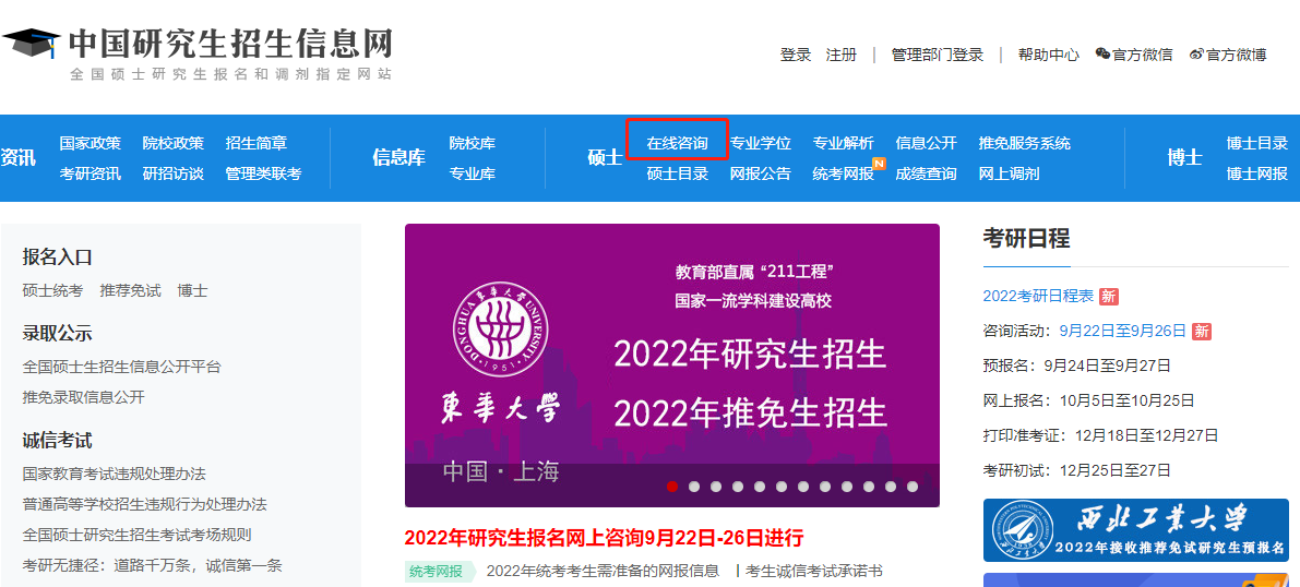 研招網(wǎng)考研報(bào)考咨詢周(9月22日)開始!