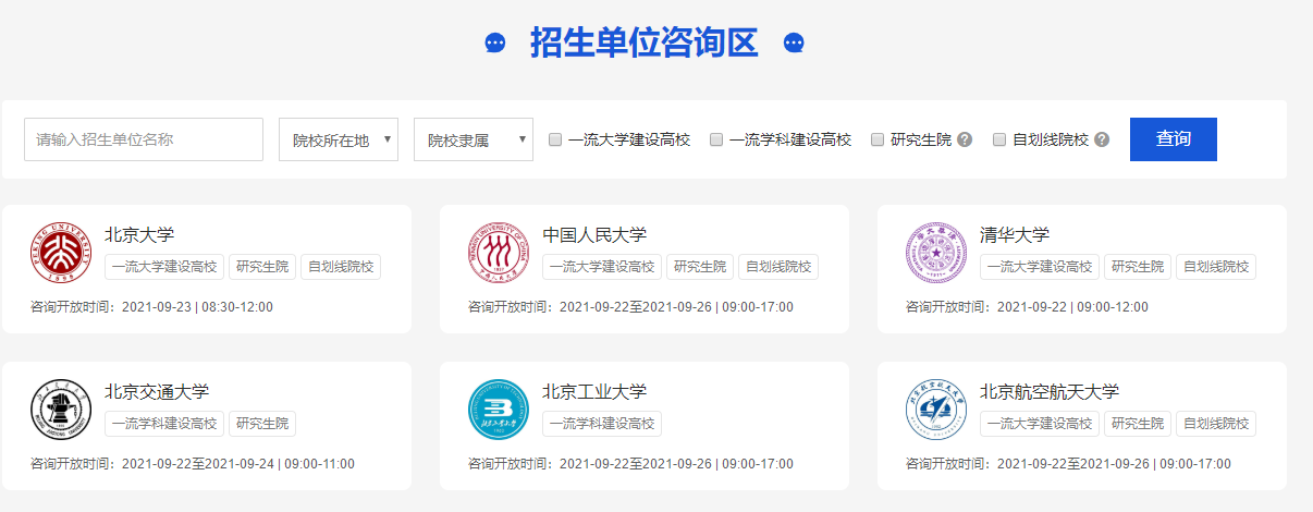 為幫助廣大考生全面、準(zhǔn)確了解研究生招生政策,教育部有關(guān)部門于2021年9月22日至26日在“中國研究生招生信息網(wǎng)”(https://yz.chsi.com.cn)上開展“2022年全國碩士研究生招生宣傳咨詢”活動,所有研究生招生單位將在線回答考生提問。一起來看!