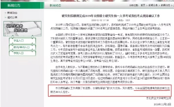 本次現(xiàn)場確認工作得到了校團委、農(nóng)學院等部門的大力支持。另外據(jù)悉,今年全國各地報考我校的考生總數(shù)達3800人左右。(摘自東北農(nóng)業(yè)大學研究生院官網(wǎng))
