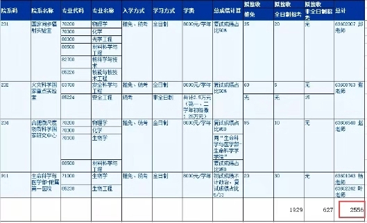 由于中國科學技術(shù)大學招生簡章上未公布2019計劃招生人數(shù),研線菌根據(jù)專業(yè)目錄上各個專業(yè)招生人數(shù)統(tǒng)計中國科學技術(shù)大學2019計劃招生人數(shù)為2556人(由于信息較多,故統(tǒng)計仍然可能出現(xiàn)細小的錯誤,如有發(fā)現(xiàn),請聯(lián)系管理員,我們及時更正)。