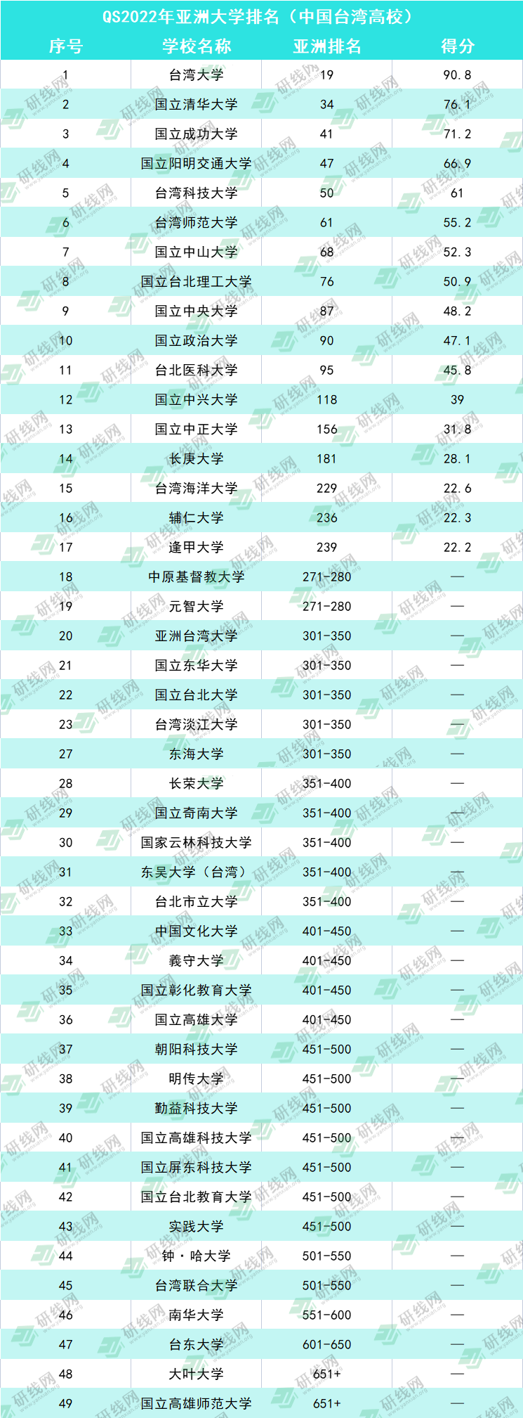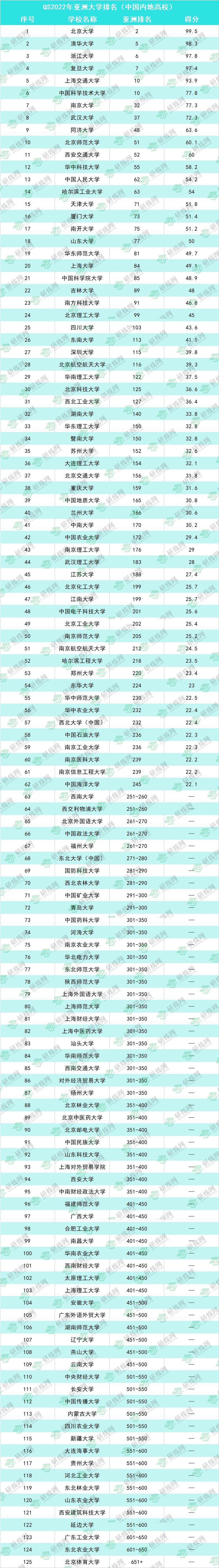 QS發布了2022亞洲大學排行榜(QS University Rankings Asia 2022),來自亞洲不同國家和地區的651+所高校上榜。中國170+所大學進入亞洲500強,數量亞洲第一。