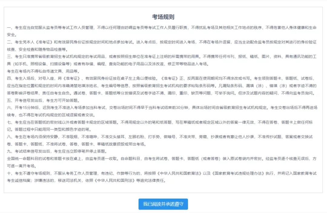 點擊“我已閱讀并承諾遵守”按鈕后,進入省級教育招生考試機構(gòu)公告頁面。