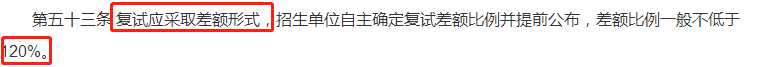 差額復試的比例一般為1:1.2(即120%的比例),比如招生計劃錄取100人,會讓120個人去參加復試,然后再從120人中錄取100人,這樣就是1:1.2的差額。部分高校、專業將該比例提高到1:1.5。
