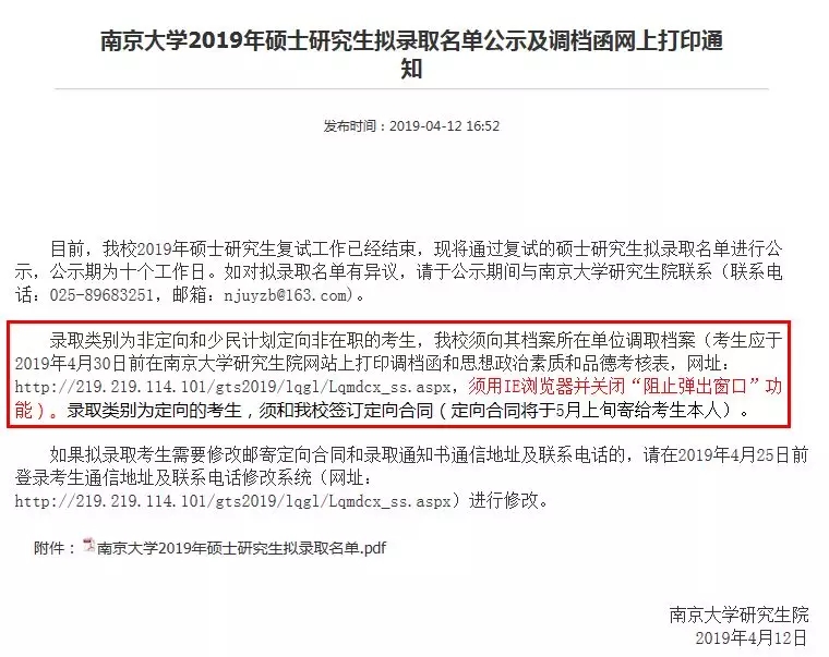 目前,已有學校發布關于調檔函的相關通知。例:南京大學研究生院官網4月12日通知,如下圖: