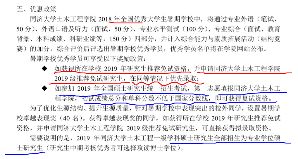 如:同濟大學土木工程學院對優秀營員的優惠政策: