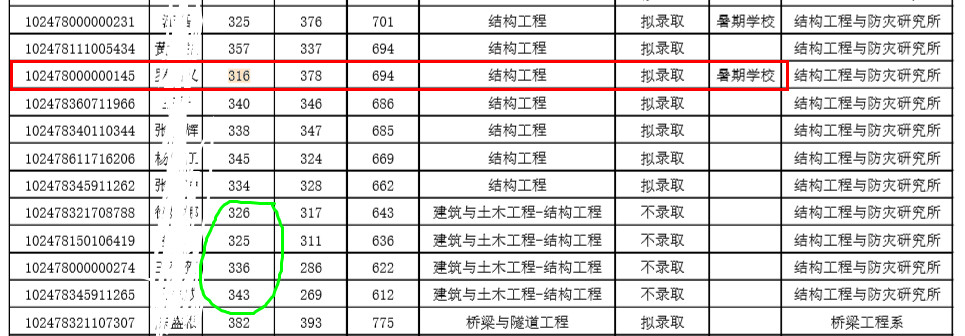 如下圖所示同濟大學土木工程學院2018年擬錄取名單,土木工程學院建筑與土木工程復試分數線要求大于等于325分,而下圖中316分被錄取,該同學后面備注:暑期學校,也就是暑期夏令營。