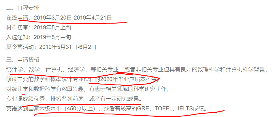 比如:清華大學統計學研究中心2019年全國優秀大學生夏令營通知,4月21日就已經結束在線申請了!