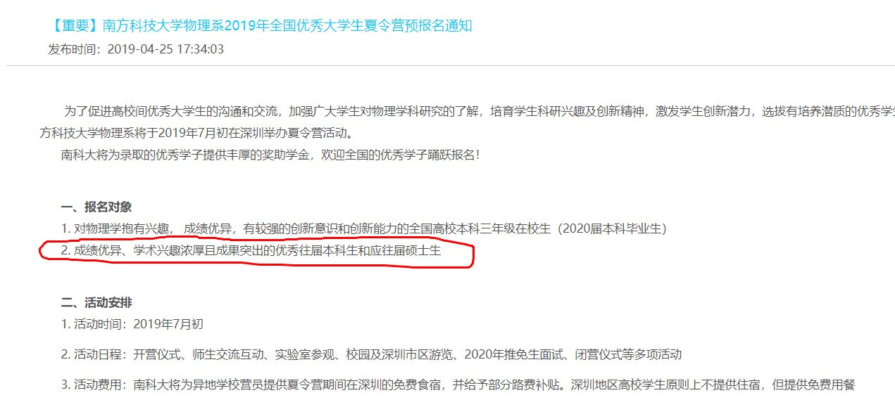 比如:南方科技大學物理系,報名對象第2條:成績優異、學術興趣濃厚且成果突出的優秀往屆本科生和應往屆碩士生。