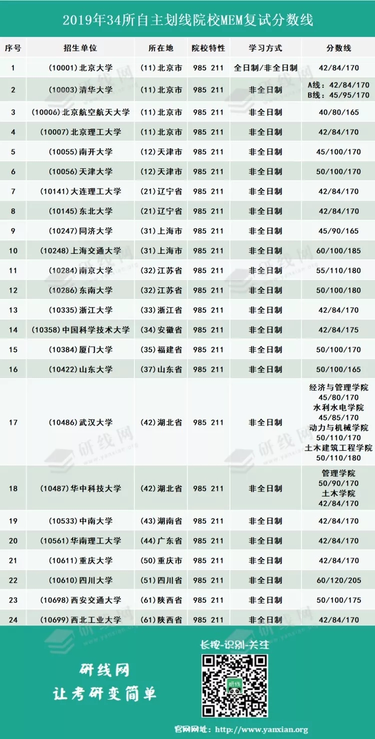 本次匯總涵蓋北京、天津、河北、上海、廣州、湖南、湖北等省市自治區(qū)直轄市的105所院校工程管理碩士復(fù)試分?jǐn)?shù)線!