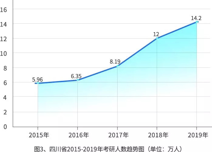 同樣考研人數近幾年翻番的還有四川省、廣東省、福建省等多個省份。