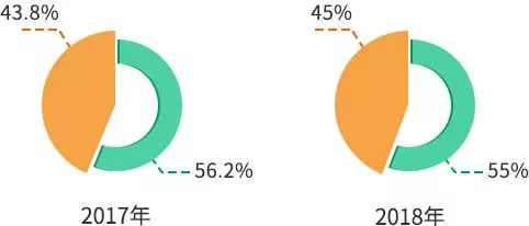 據教育部統計,2017年共201萬人報考,其中,應屆考生113萬人,往屆考生88萬人;2018年共238萬人報考,其中,應屆考生131萬人,往屆考生107萬人。從數據可知,2017年,往屆生考研人數占全國報考人數的43.8%,2018年,往屆生考研人數占全國報考人數的45%,同比上升了1.2%。