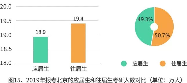 應屆研考生有18.9萬人,約占49.3%;非應屆研考生有19.4萬人,約占50.7%。