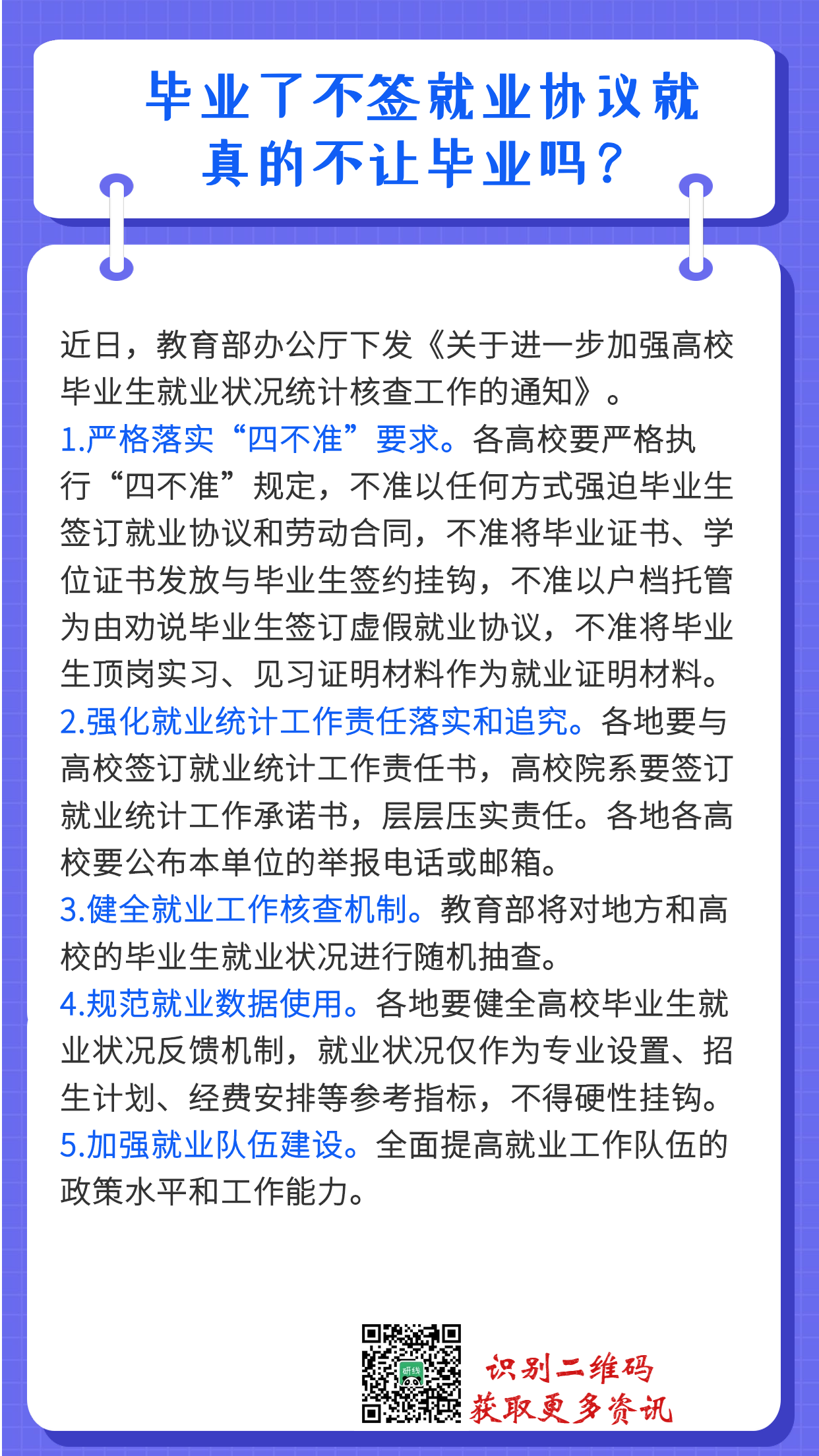 那么,畢業(yè)不簽就業(yè)協(xié)議就真的不讓畢業(yè)嗎?