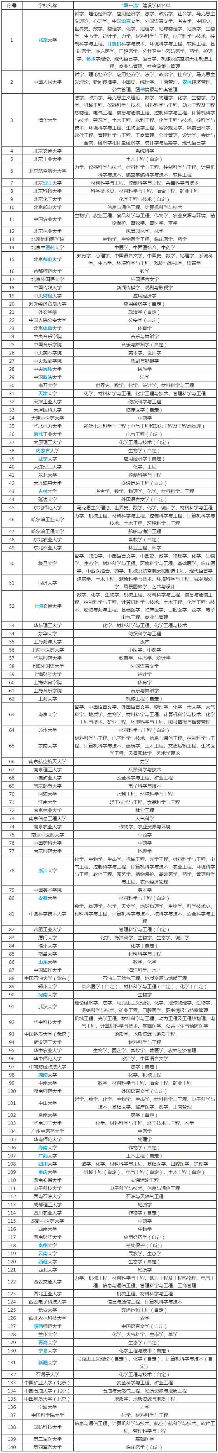 當然,42所世界一流大學都是世界一流學科建設高校,所以嚴格上說世界一流學科建設高校名單有140所,以下是具體名單和建設學科。