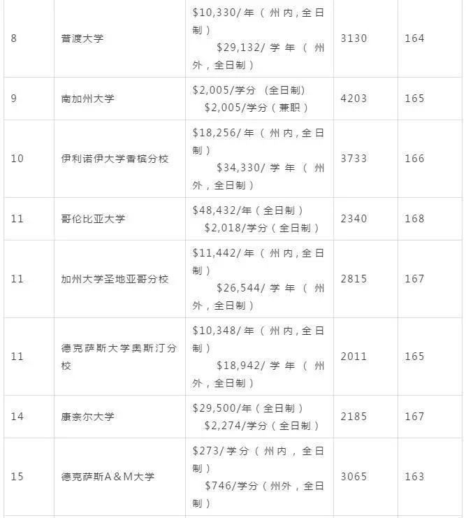 該排名是對美國研究生學院各項指標的加權平均計算所得,所參考的各項指標包括: 學術聲譽、畢業率和新生返校率、師資力量、新生水平、經濟實力、畢業率表現、校友捐贈等,此外在工程學院的排行當中參考了該研究學院中是國家學術工程教授的人數。 在商學院的評測當中,我們會將參考畢業研究生的薪資水平。