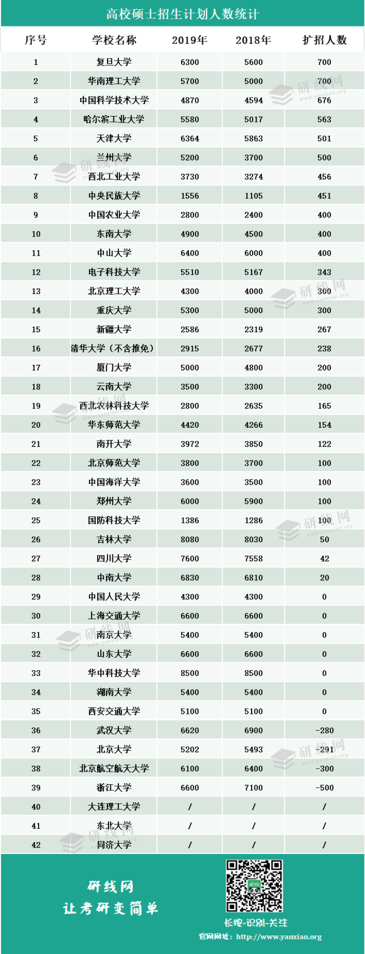 2019年共有28所雙一流高校進行擴招,人數高達近萬人。
